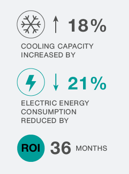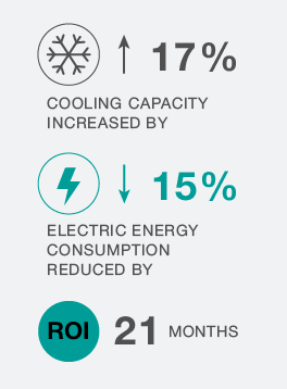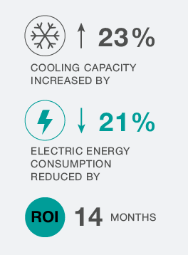 Electricity consumption reduced by 21%, cooling capacity boosted by 23% and COP by 1.9%...
