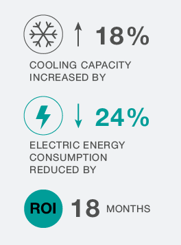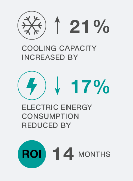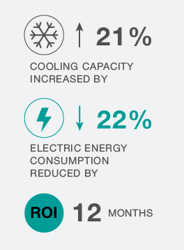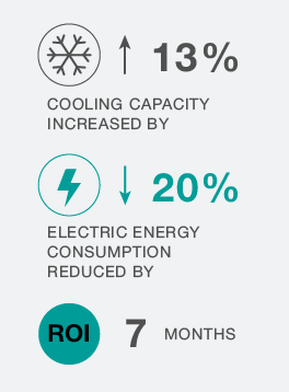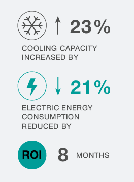 Results: Electricity consumption reduced by 20% and cooling capacity boosted by 13% on average...