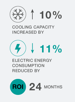 Results: Increases equipment efficiency, provides extra cooling power by up to 23%.
